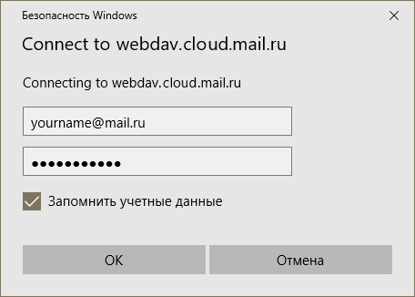 https://webdav.cloud.mail.ruи нажмите Подключиться.