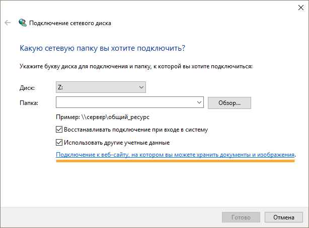 Нажмите Готово. Сетевой диск будет доступен в Проводнике.