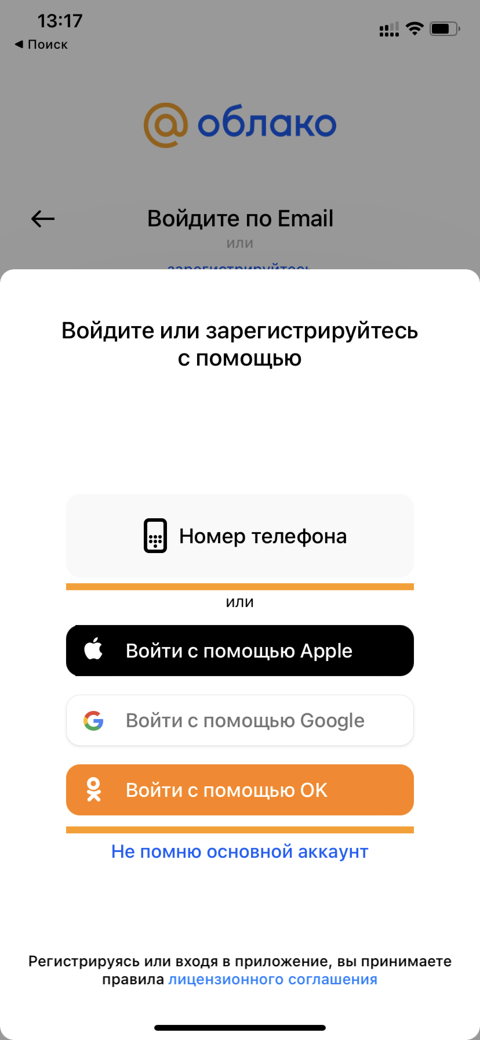 Вы можете войти в Облако с помощью своего аккаунта на Одноклассниках.