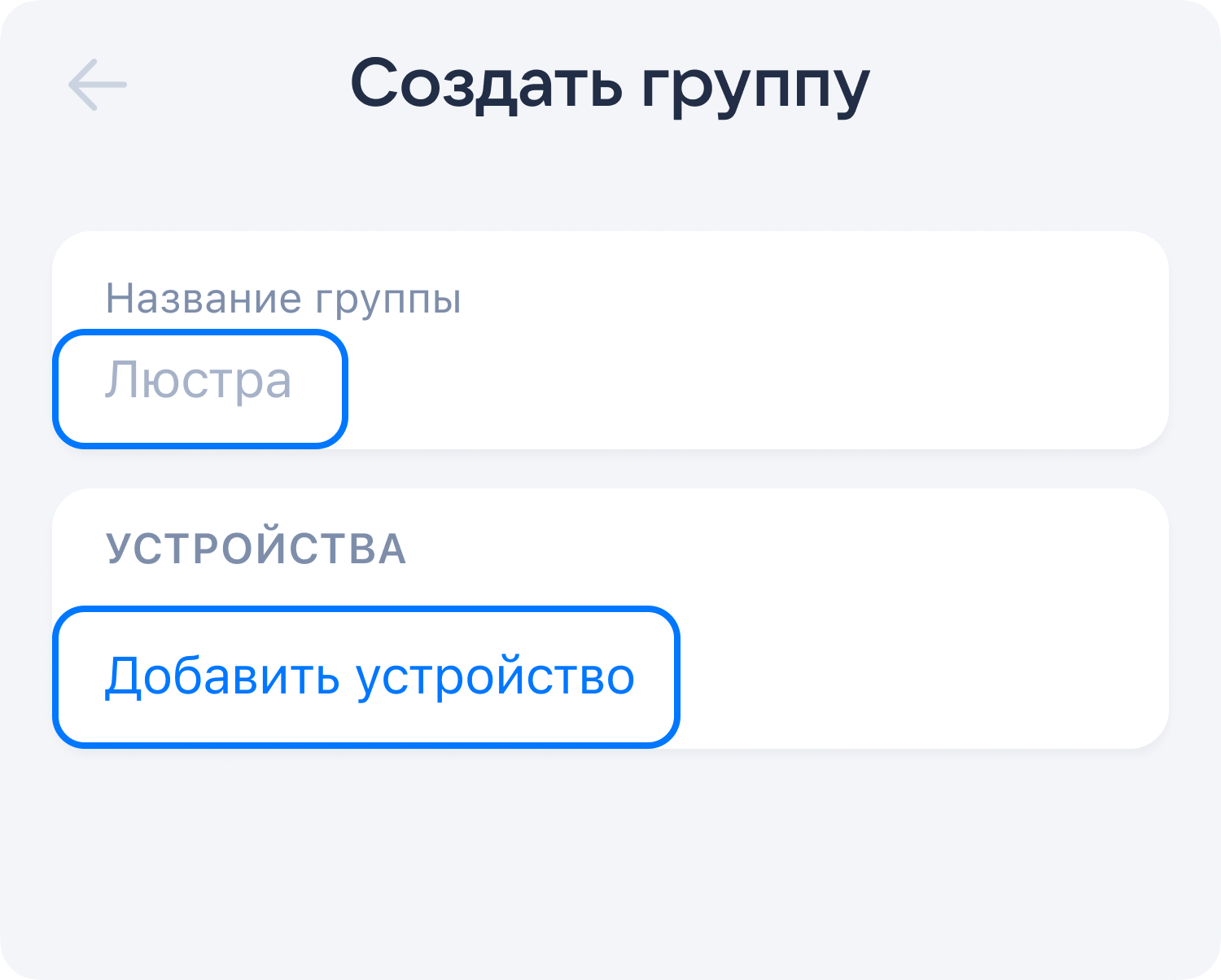 Придумайте название для группы и добавьте в неё устройства.