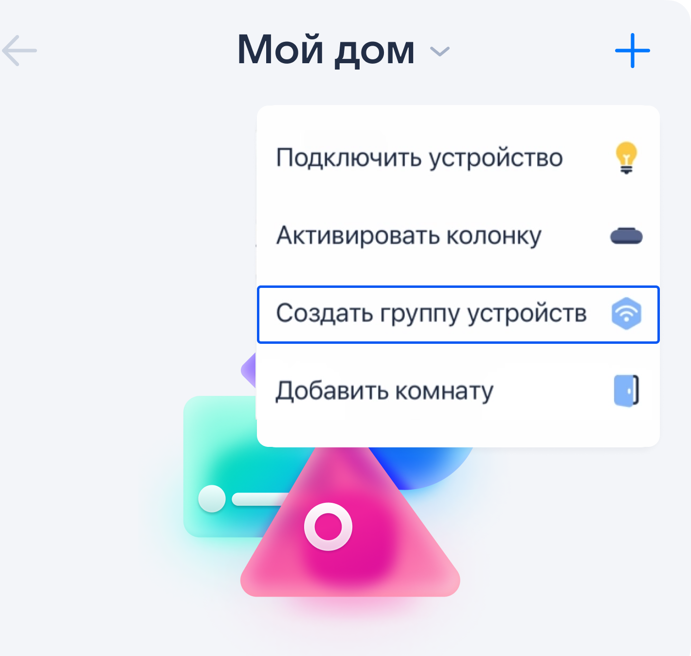 Нажмите Создать группу. После этого она появится на главном экране умного дома с Марусей, в разделе Группы.