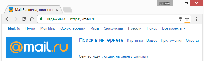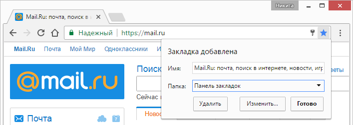 Чтобы открывать Mail одним нажатием, не набирая адрес сайта в адресной строке, добавьте страницу в закладки.