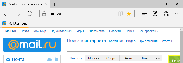 - Откройте браузер Microsoft Edge и перейдите на mail.ru.