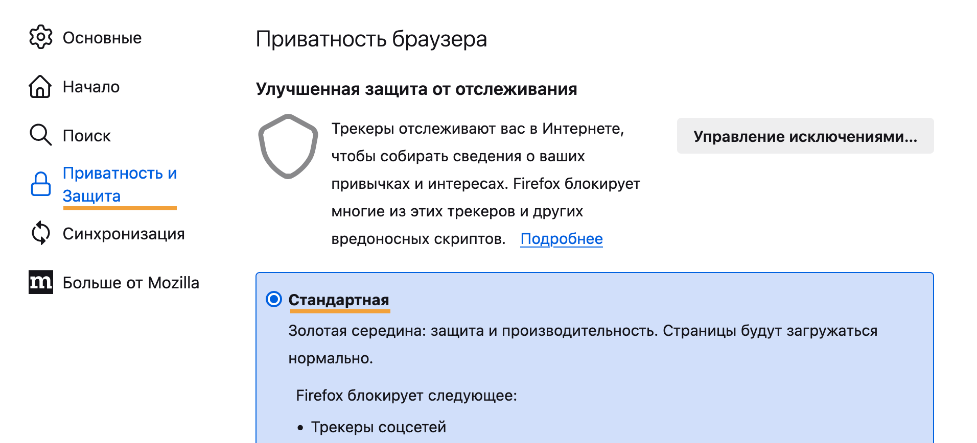 → Настройки.Нажмите слева Приватность и защита.