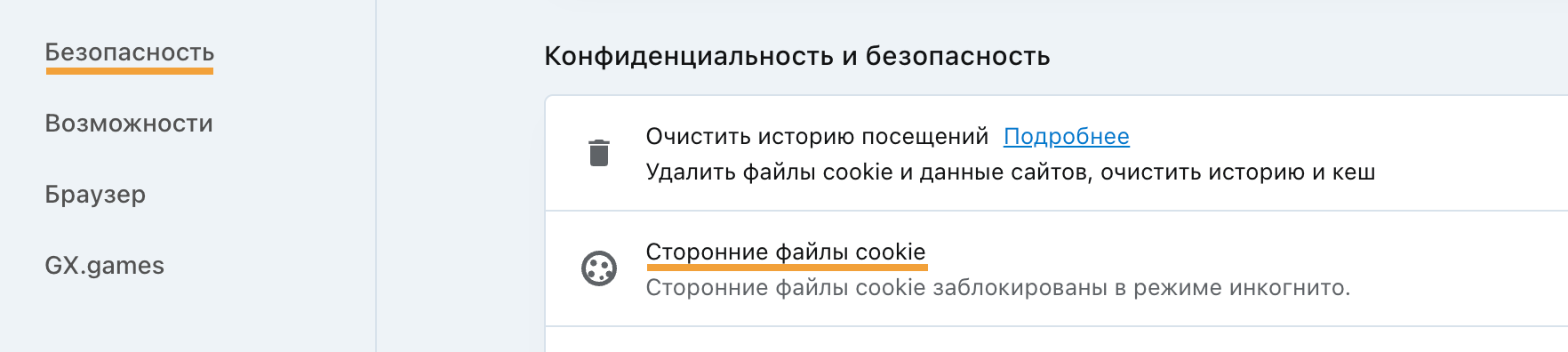 Выберите Сторонние файлы cookie.