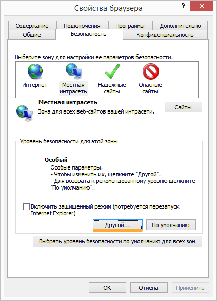 В области Уровень безопасности для этой зоны нажмите Другой….