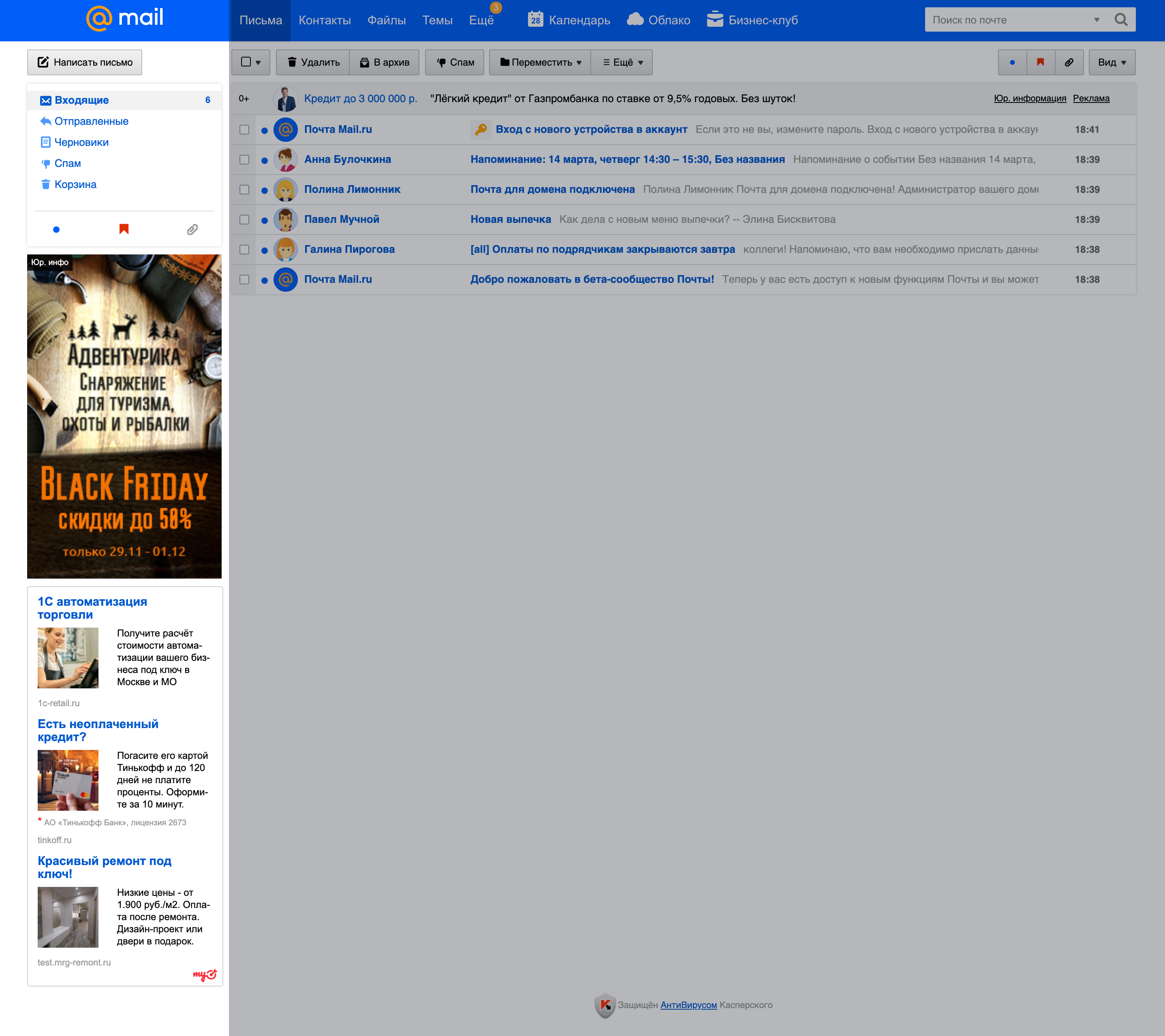 Проверьте почту в другом браузере. Если проблема не повторяется, значит она в вашем браузере
