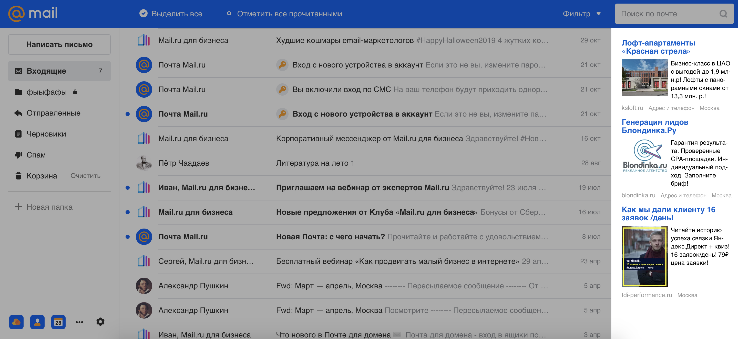 В новой Почте вы всё так же можете смотреть непрочитанные письма в одной папке и во всей почте.