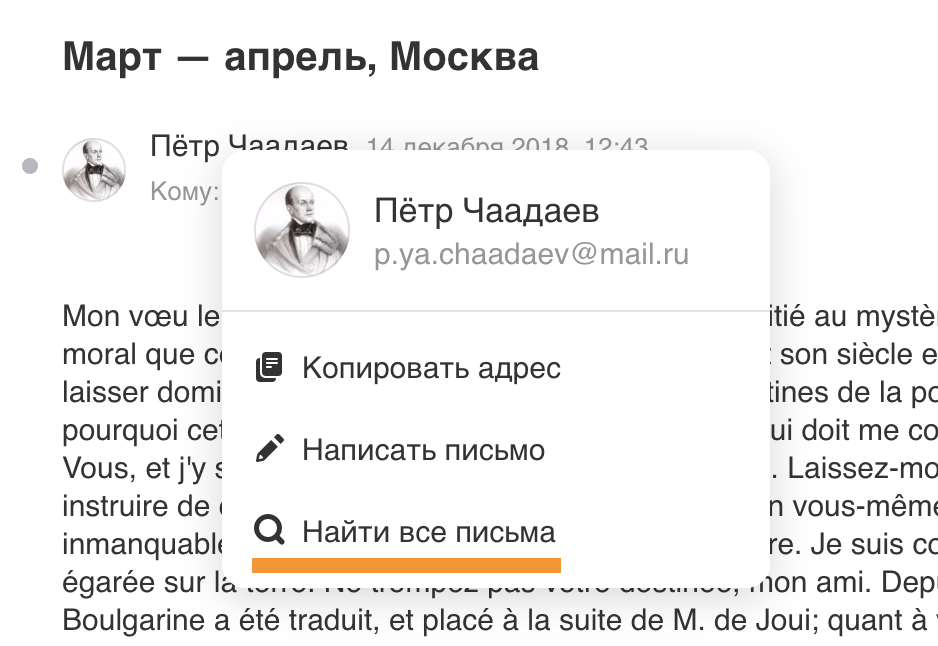 Найти все письма с одного адреса
