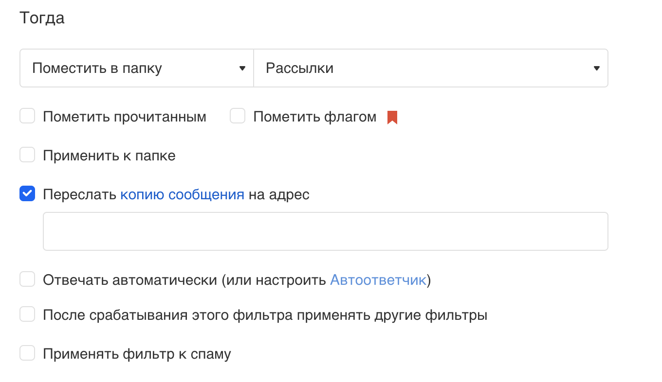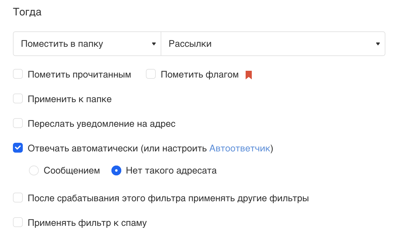Не срабатывает фильтр — письма не приходят в нужную папку