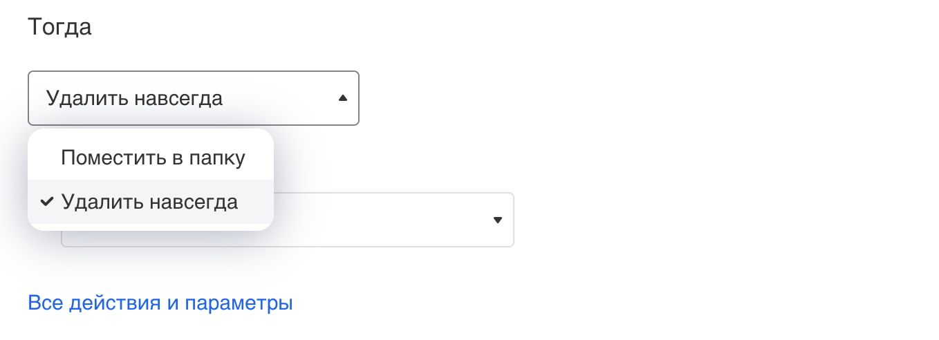 При создании фильтров Поместить в папку Корзина, Поместить в папку Спам, Удалить навсегда рекомендуем не использовать в полях От и Тема слова из 2–4 букв, например no, yes, all, from; числа, похожие на год, например 1980; символы ., *, -, _, < или >. Если в почтовых адресах, от которых вы получаете письма, будут эти символы, к ним могут примениться условия фильтра, и вы не получите эти письма.