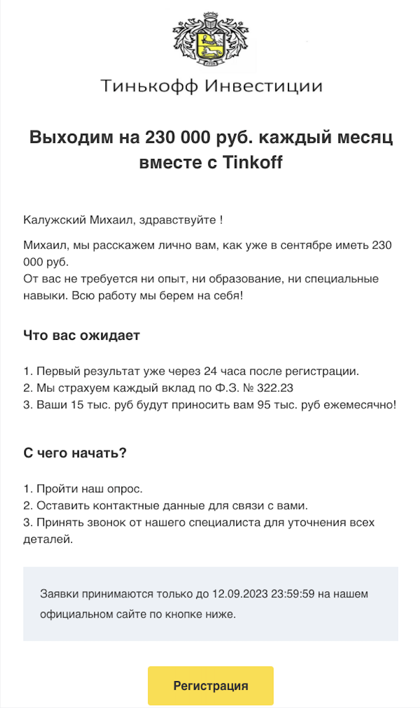 Мошенничество в письмах часто связано с деньгами: обещают подарки, большие скидки, лёгкий заработок или пугают штрафами. На самом деле цель — украсть деньги.