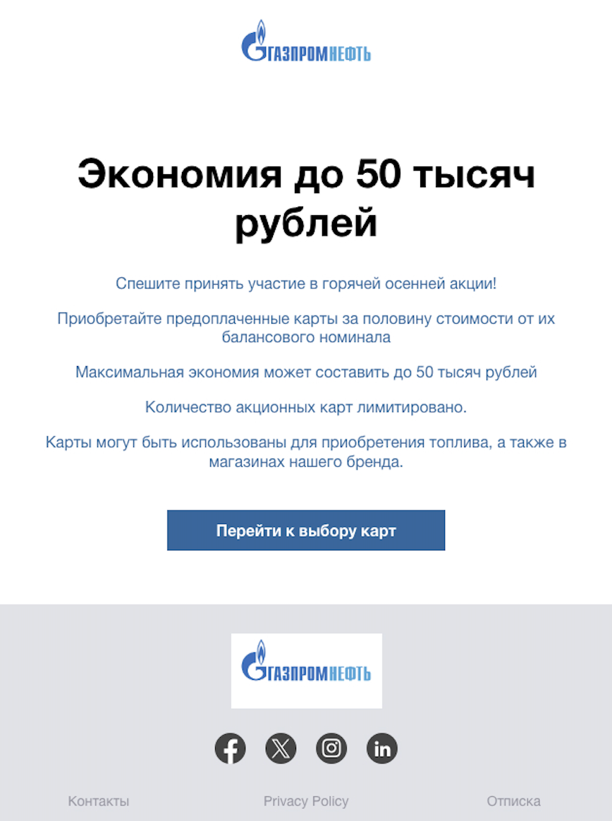 В письмах, которые сообщают о победе в конкурсе, скидках или бонусах, как правило, нужно перейти по ссылке и ввести данные вашей карты.